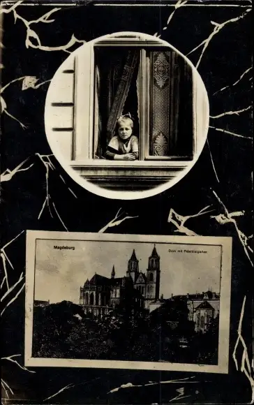 Fotomontage Ak Magdeburg an der Elbe, Dom, Kind am Fenster