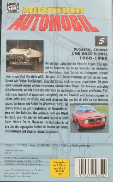 Zustand: 1Fox Video Film VHS-Videokasette"Abenteuer Automobil - Flossen, Chrome und Rock'n Roll"52 Minuten Automobil-Werbung im FilmRegie: Jaques Broux
