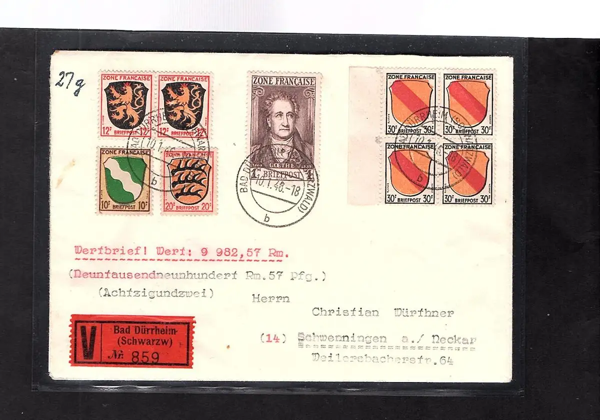 Fr.-Zone Wertbrief mit Mi.-Nr. 5 ua.