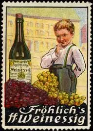 Essig, Kind, Weintrauben, Größe/Zustand: 5x4 , guter Zustand, Original alte Reklamemarke die seinerzeit für die Werbung benutzt wurde