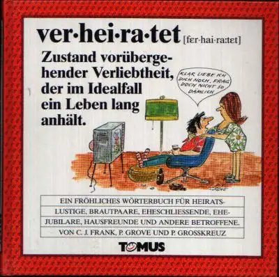 Verheiratet; C.J. Frank; fröhliches Wörterbuch; Heiratslustige; Brautpaare; Eheschließende; Ehejubilare; Hausfreunde; Betroffene; Humor; Satire; Karikatur; Lustiges; Heiteres; Witz; Geshcichten