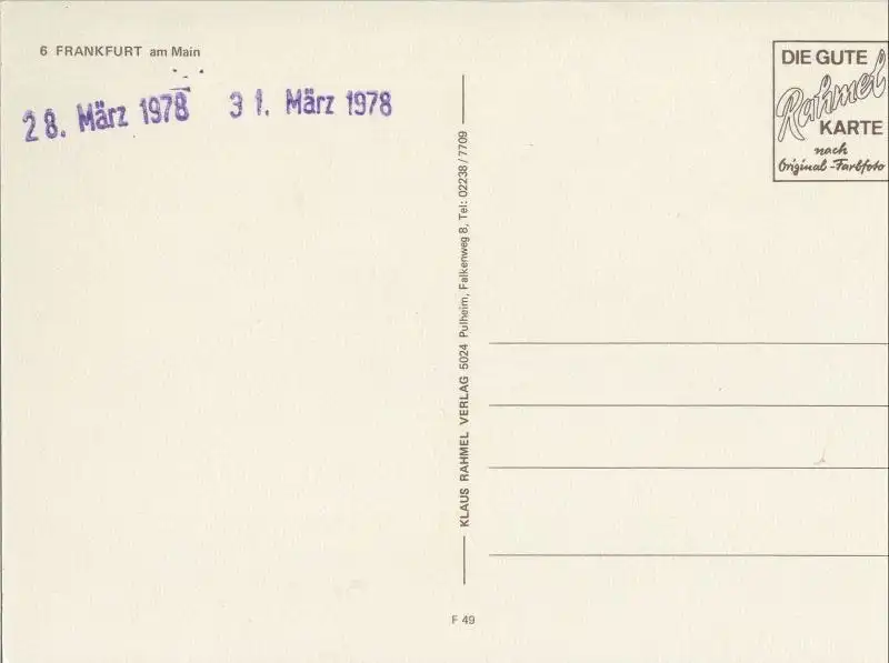 Postleitzahl:60599 (neu) / W 6000 (alt)