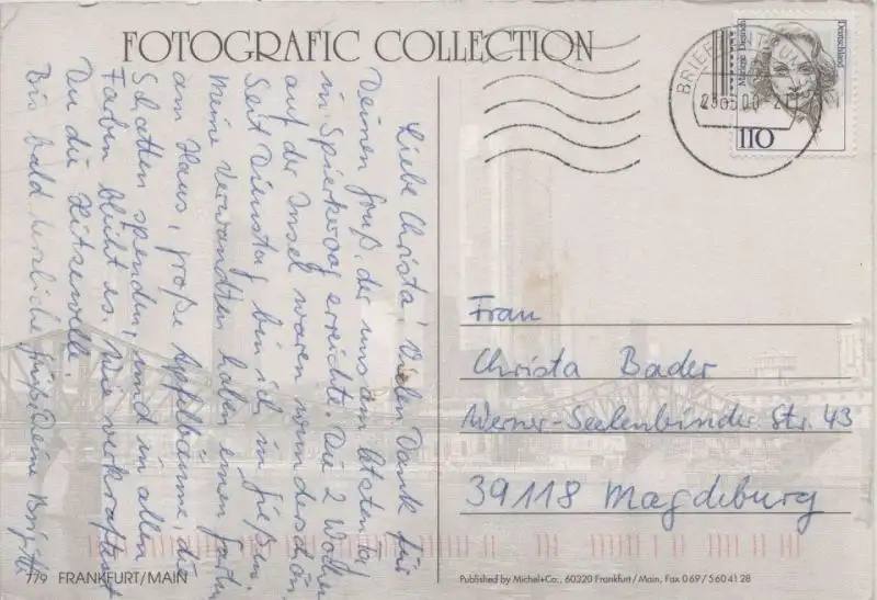Postleitzahl:60599 (neu) / W 6000 (alt)