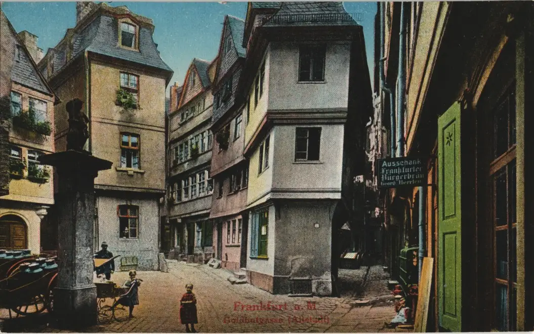 Frankfurt am Main Straßen Ansicht Goldhutgasse Altstadt color Ansicht 1910
