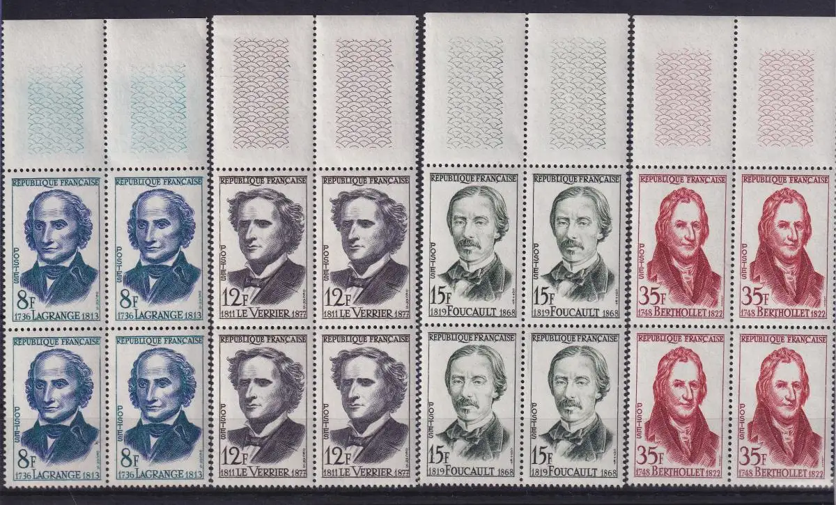 Frankreich 1958 Wissenschaftler Mi.-Nr. 1182-1185 Oberrandviererblocks **