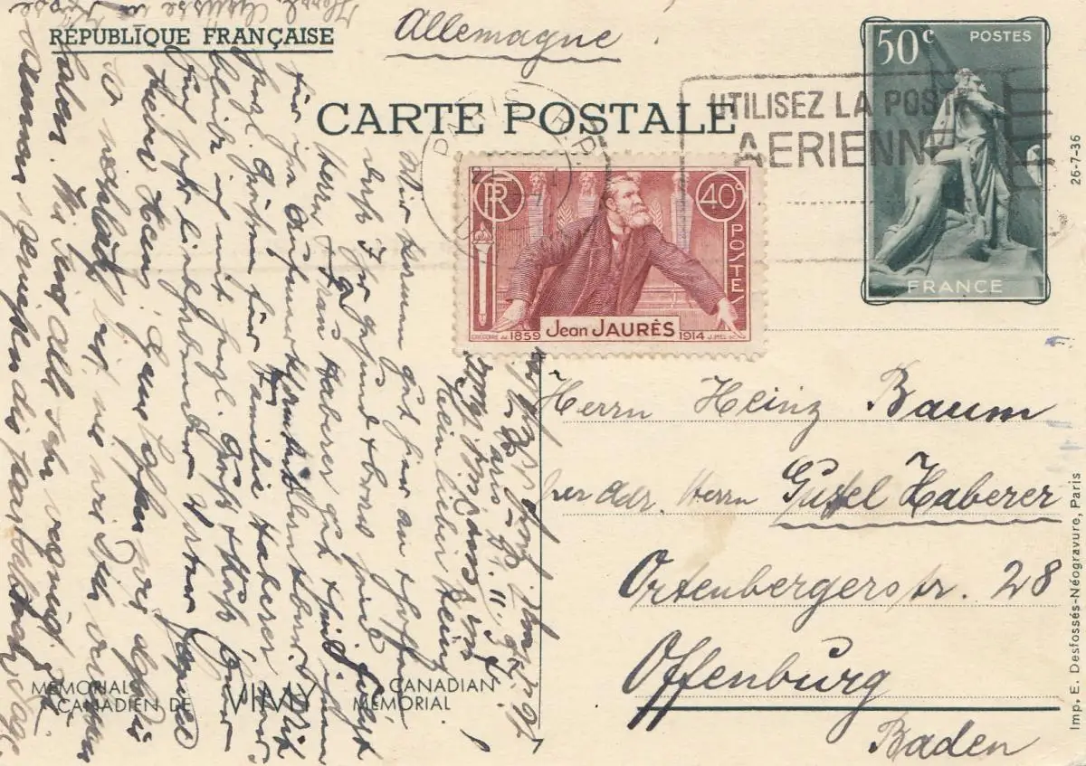Frankreich: Ansichtskarte Memorial Canadien