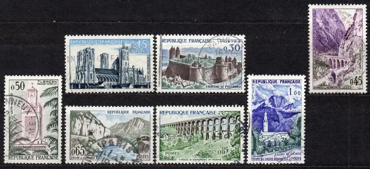 Frankreich, Mi-Nr. 1283 - 1289 gest., kompl., Bauwerke + Landschaften