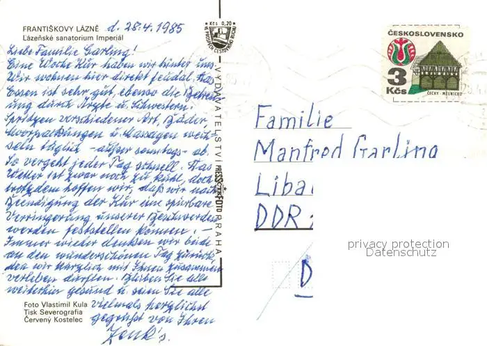 Frantiskovy_Lazne Lazenske sanatorium Imperial Frantiskovy_Lazne postalisch gelaufen 1985 Erhaltung siehe scans [WerneD78] WernPID7
