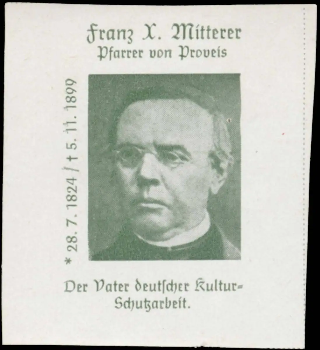 Der Vater deutscher Kultur-Schutzarbeit, Wehrschatzmarke, Tirol, Südtirol, Größe/Zustand: 5x4 , guter Zustand, Original alte Reklamemarke die seinerzeit für die Werbung benutzt wurde