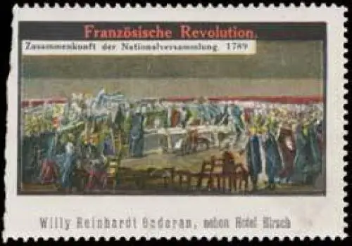 Zusammenkunft der Nationalversammlung 1789, Größe/Zustand: 4x6 , beschädigt, Original alte Reklamemarke die seinerzeit für die Werbung benutzt wurde