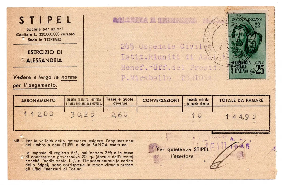 Fratelli Flagiera Cent. 25 isoliert auf Verfallshinweis Umschlag - Brüder Flagge Cent. 25 isoliert auf Ablaufhinweis Telefonrechnung - hochwertige Einmalnutzung - Kat. euro 120 Cod. 196/13