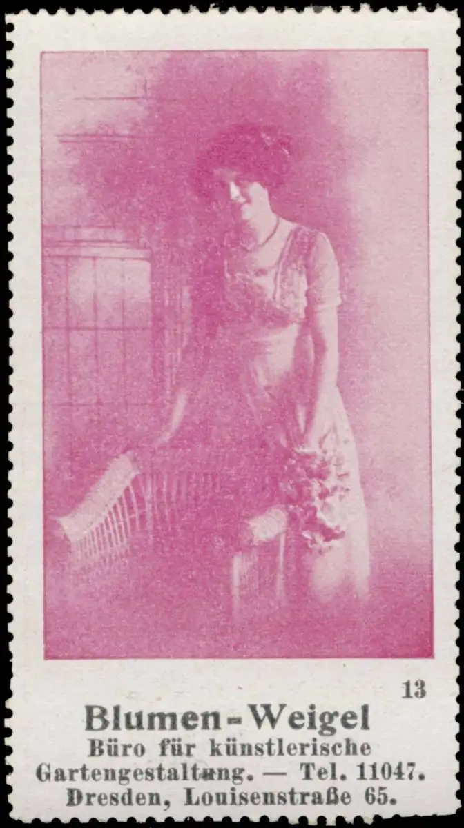 Blumenhalle und Landschaftsgärtnerei, Louisenstraße 65, Größe/Zustand: 7x4 , guter Zustand, Original alte Reklamemarke die seinerzeit für die Werbung benutzt wurde