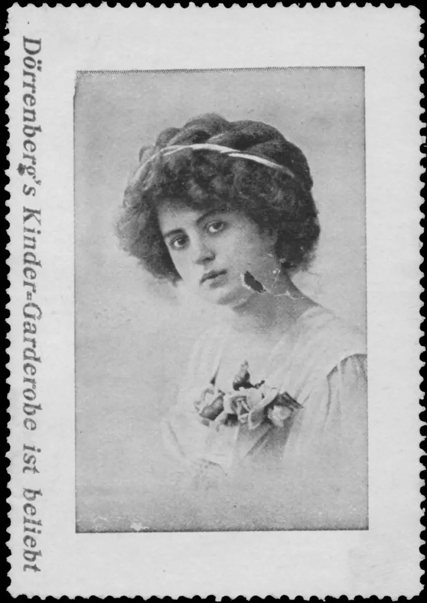 Dörrenbergs Kinder-Garderobe ist beliebt, Größe/Zustand: 7x5 , beschädigt, Original alte Reklamemarke die seinerzeit für die Werbung benutzt wurde