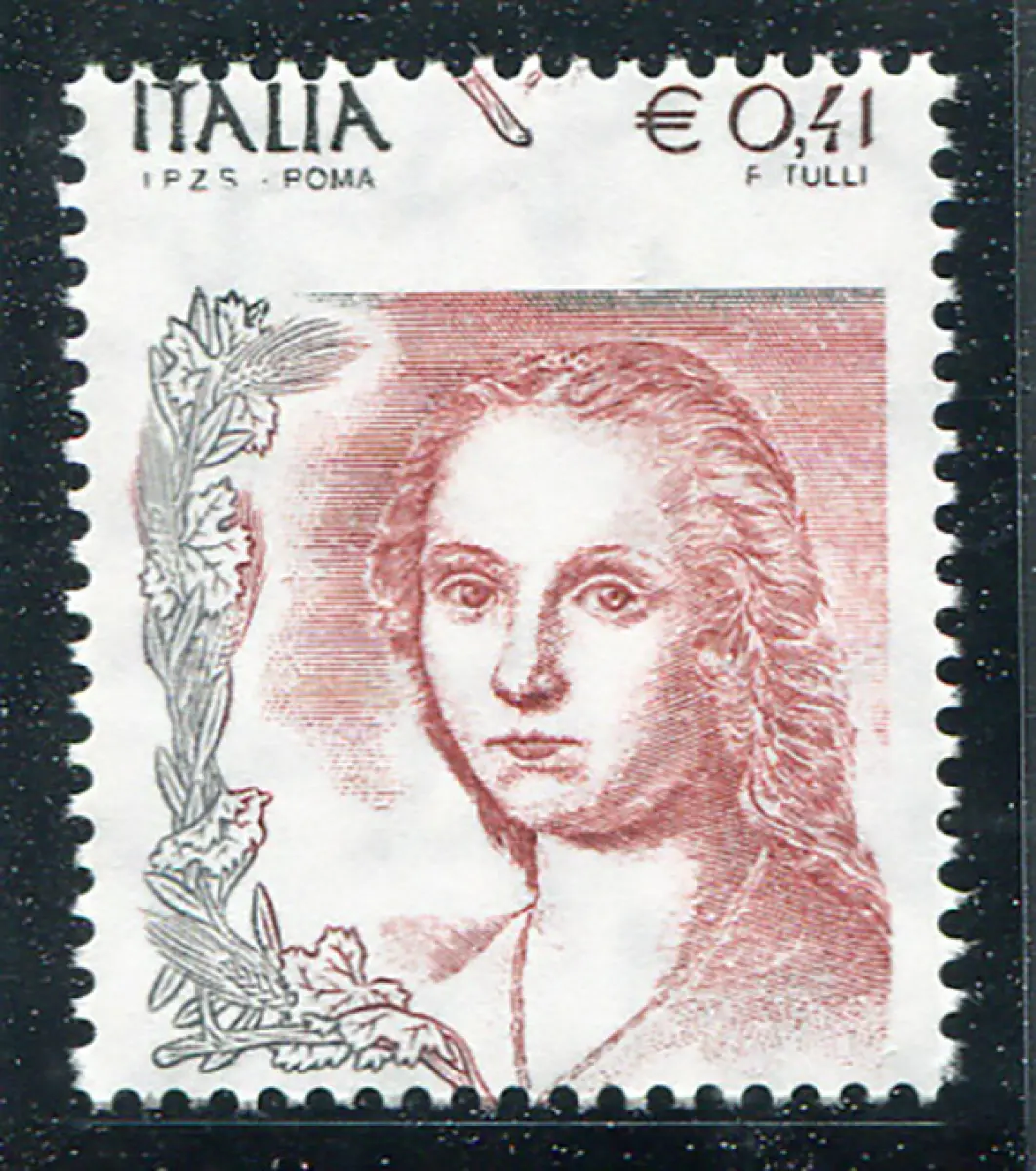 Frau in der Kunst Euro 0,41 Sorte verschobene Verzahnung Vollgummi - MHN - - - Frau in der Kunst Euro 0,41 Nr. 2589 stark verschobene horizontale Verzahnung Italien nach oben (Sass. spec. Nr. 2228 Ea) Cod. 830/14