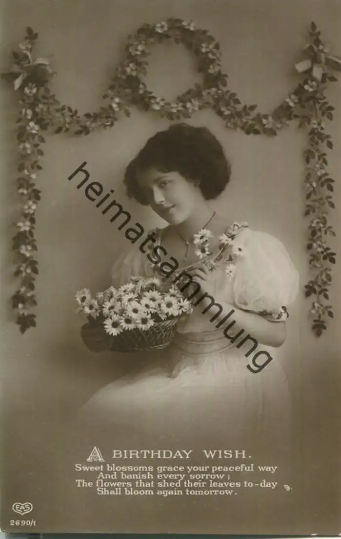 Frau mit Blumen - Published by E. A. Schwertfeger & Co. London EAS - Rückseite beschrieben 1911 (G15586) *