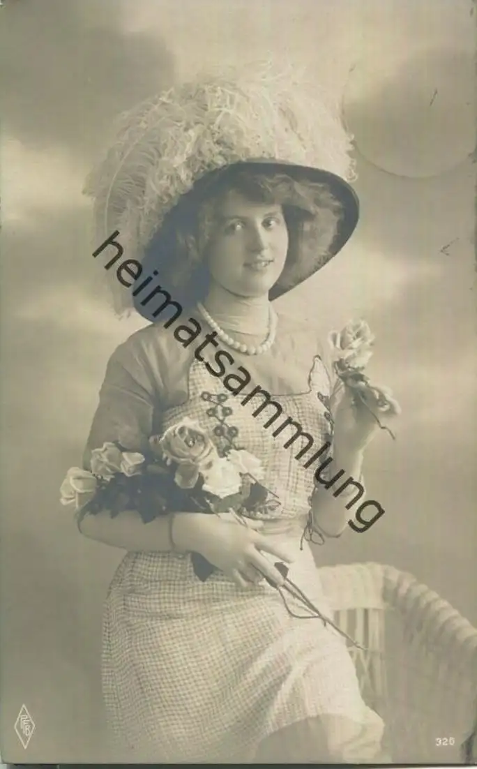 Frau mit Hut - Hutmode - Rosen (G50408) gel. 1911