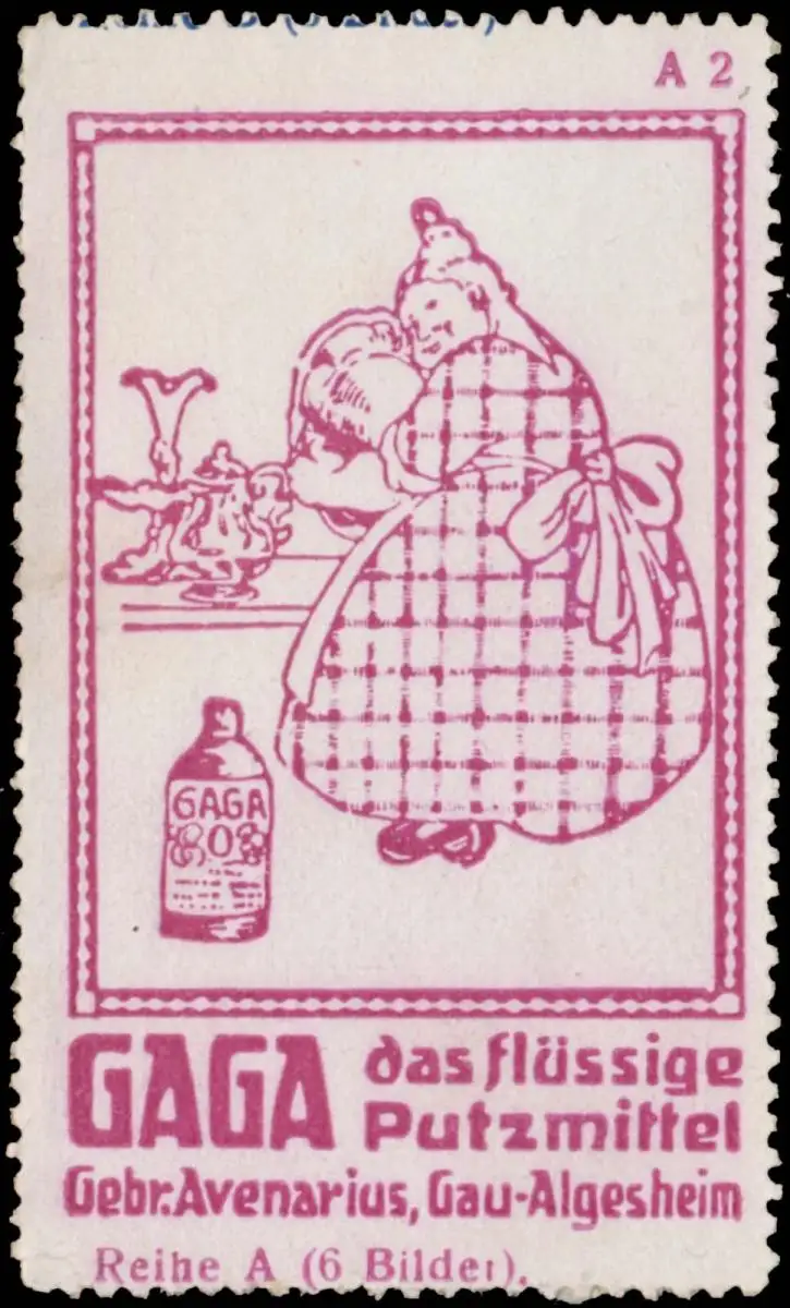 GAGA das flüssige Putzmittel, Reihe A, 2, Größe/Zustand: 7x4 , guter Zustand, Original alte Reklamemarke die seinerzeit für die Werbung benutzt wurde