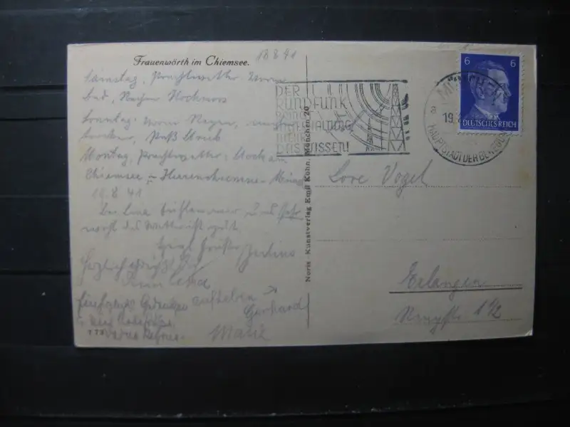 ca. 1941; Unschärfen, Spiegelungen, Verbiegungen, Verwerfungen sind allein durch das abfotografieren bedingt; Karte ist beidseitig abgebildet, Erhalt siehe Scan; ist das Foto qualitativ nicht aussagekräftig genug, kann es besseres Foto angefordert werden. Rückgabe bei Karten ist generell ausgeschlossen.