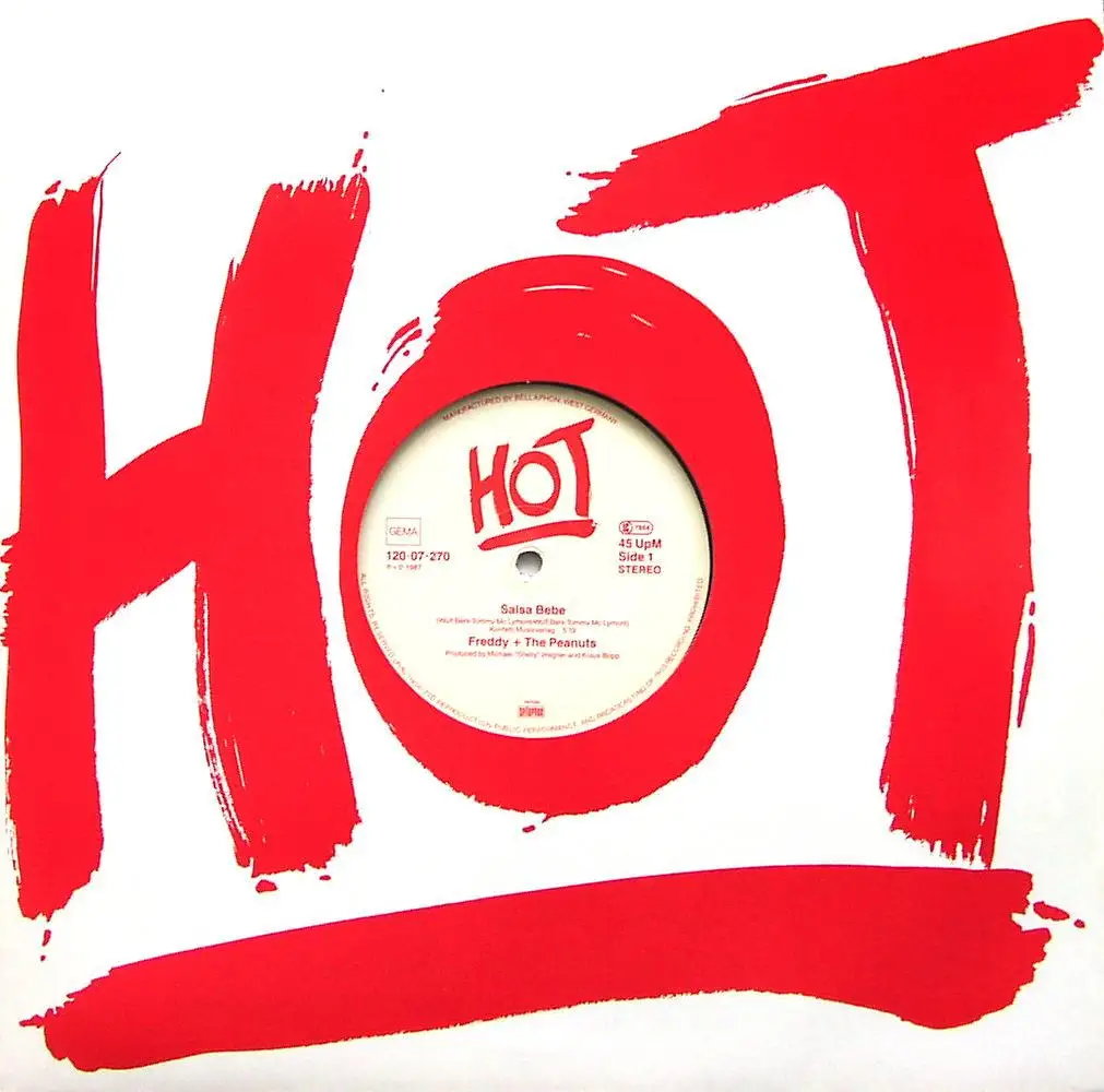 12" Maxi Freddy & The Peanuts - Salsa Bebe, Einheitscover der Plattenfirma; Info, Zustand Platte M- Hülle M; Made in Germany 1987 HOT 120.07.270, Tracks 5:19, Single Version 4:20, Soveto Jive Mix 3:26
