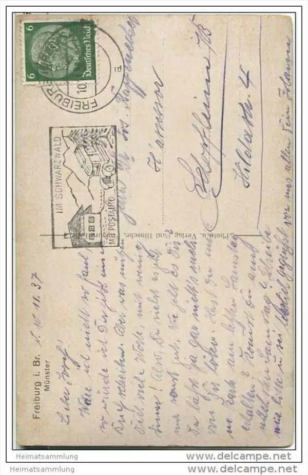 Freiburg - Münster - Verlag Paul Hinsche Freiburg - Stempelspur (G27861) gel. 1937