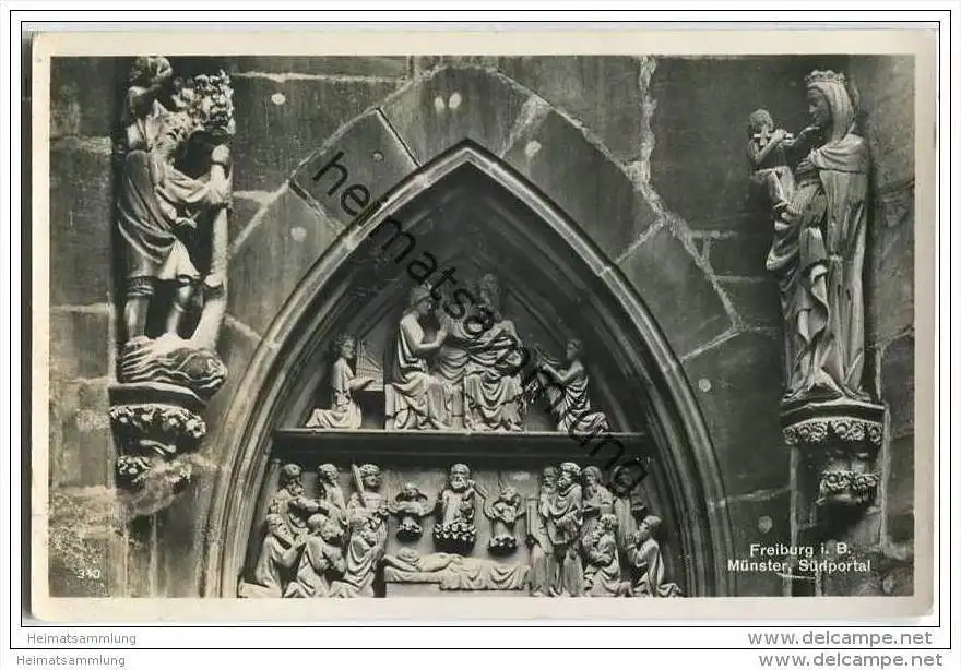 Freiburg - Münster - Südportal - Verlag Emil Hartmann Mannheim - Rückseite beschrieben - leichte Gebrauchsspuren (G27866) *