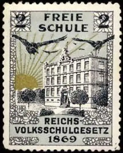 Reichsvolksschulgesetz 1869, Spendenmarke, Größe/Zustand: 4x3 , guter Zustand, Original alte Reklamemarke die seinerzeit für die Werbung benutzt wurde