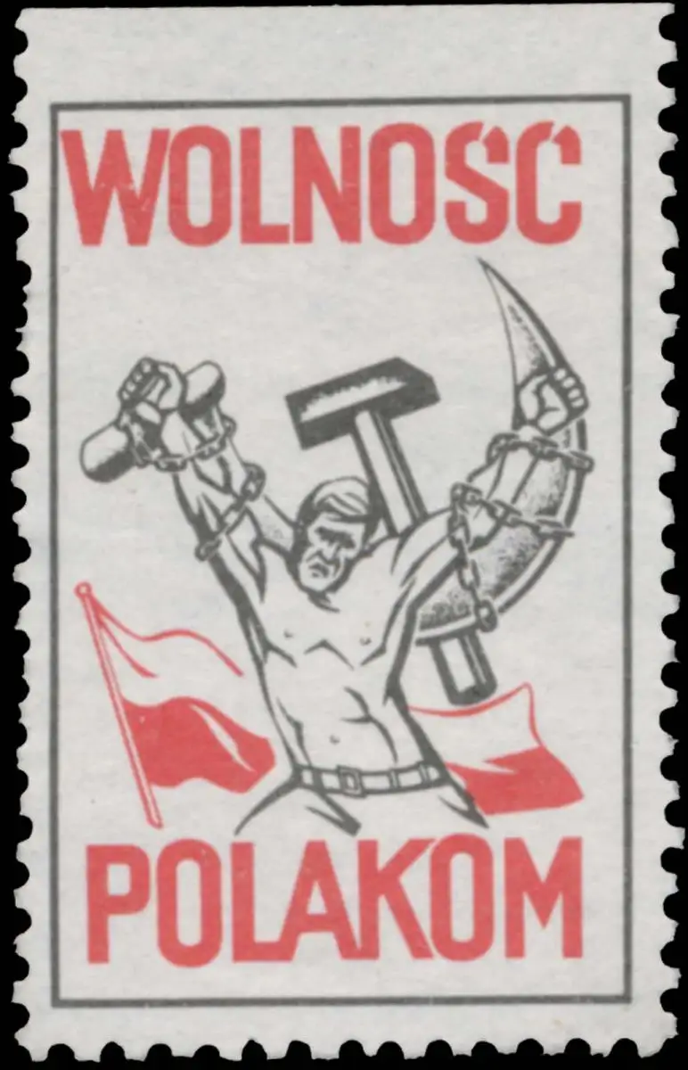 Wolnosc polakom, Sozialismus, Kommunismus, Größe/Zustand: 4x2 , guter Zustand, Original alte Reklamemarke die seinerzeit für die Werbung benutzt wurde