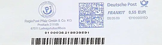 Freistempel 1D1000015D Ludwigshafen / Rhein - RegioPost Pfalz (#1037)