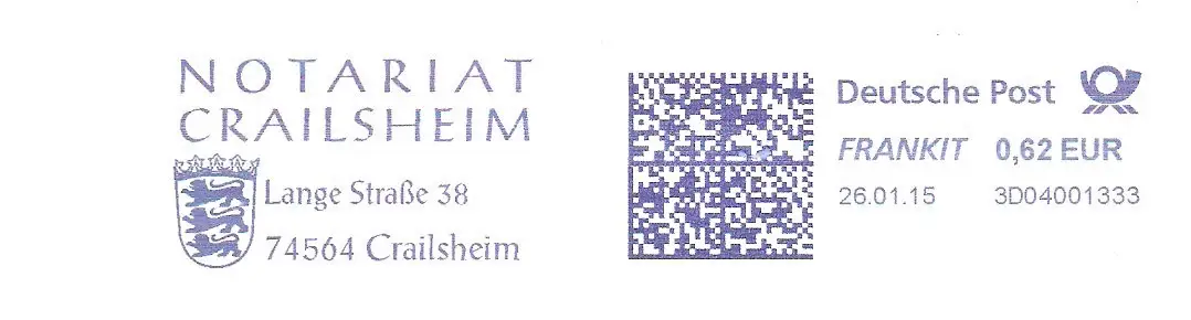 Freistempel 3D04001333 Crailsheim - Notariat Crailsheim (Abb. Wappen) (#1261)