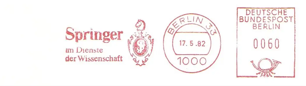 Freistempel Berlin - Springer im Dienste der Wissenschaft (Abb. Wappen mit Pferdekopf) (#1904)