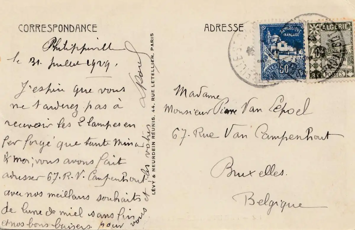 Stamp/postcard or letter are sometimes cropped due to the scan. All is complete, otherwise it is described here.