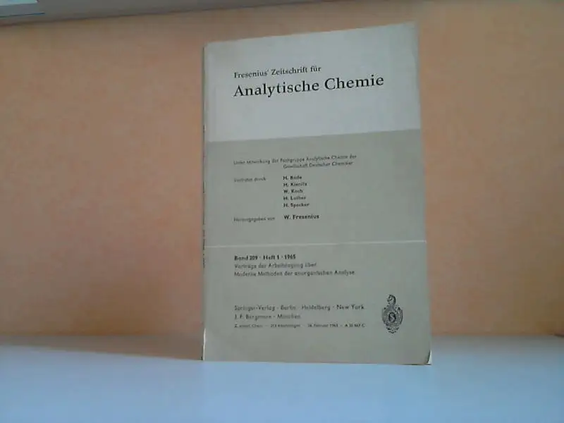 FFresenius` Zeitschrift für Analytische Chemie Band 209, Heft 1; Vorträge der Arbeitstagung über Moderne Methoden der anorganischen Analyse Fresenius; Chemie; W. Fresenius