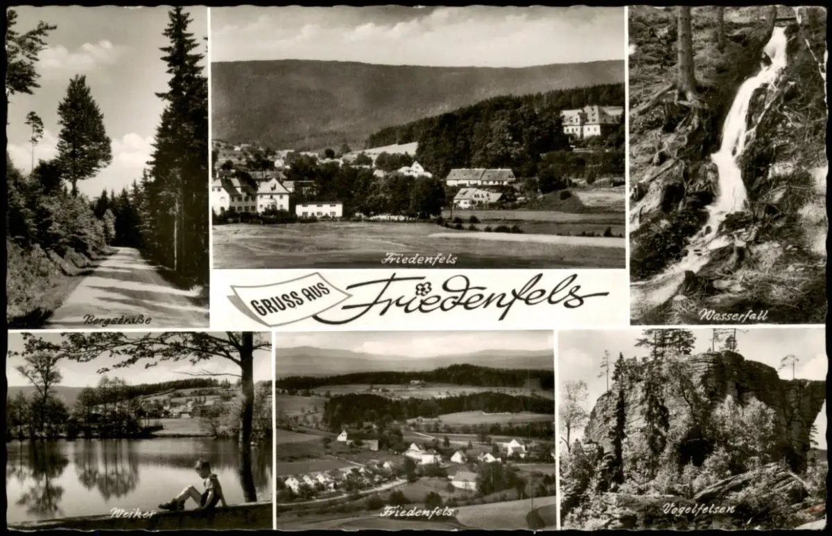 Friedenfels (Oberpfalz Lk Tirschenreuth) Wasserfall, Weiher, Vogelfelsen 1960