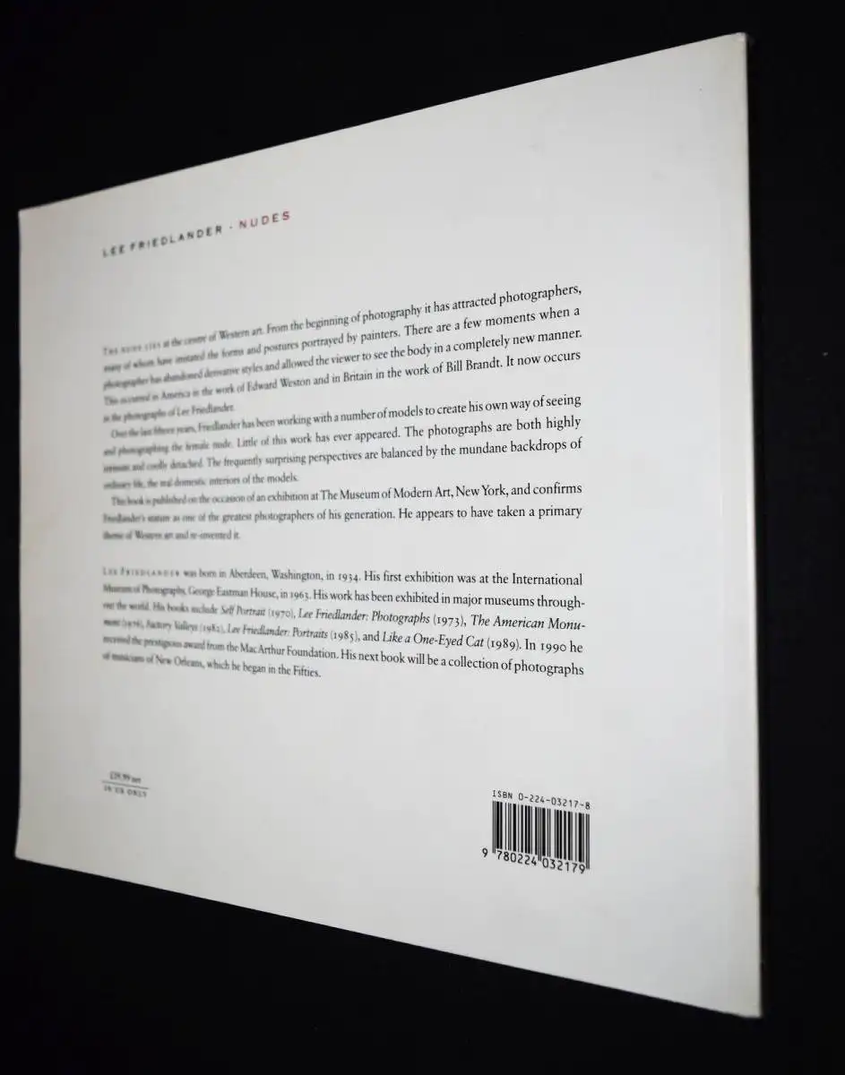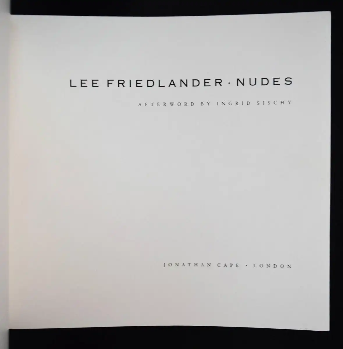 Friedlander, Lee (Norman). Nudes. Afterword by Ingrid Sischy. (Editor: Marc Holborn). London, Jonathan Cape (Random Century Group) (1991). Quer-4°. 108 S. mit 84 Duotone-Tafeln. Illustr. Orig.-Kartonumschlag.