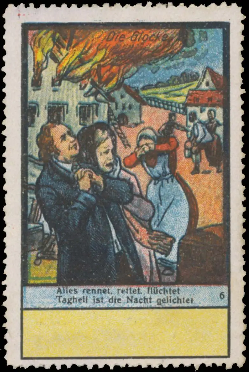 Alles rennt, rettet, flüchtet. Taghell ist die Nacht gelichtet. Bild 6, Feuer, Größe/Zustand: 6x4 , guter Zustand, Original alte Reklamemarke die seinerzeit für die Werbung benutzt wurde