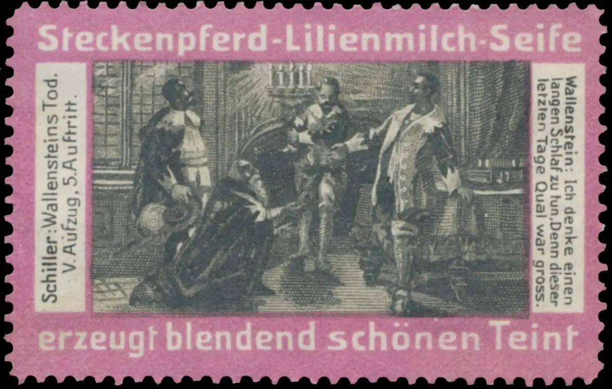 V. Aufzug, 5. Auftritt, Steckenpferd-Lilienmilch-Seife erzeugt blendend schönen Teint, Größe/Zustand: 3x5 , guter Zustand, Original alte Reklamemarke die seinerzeit für die Werbung benutzt wurde