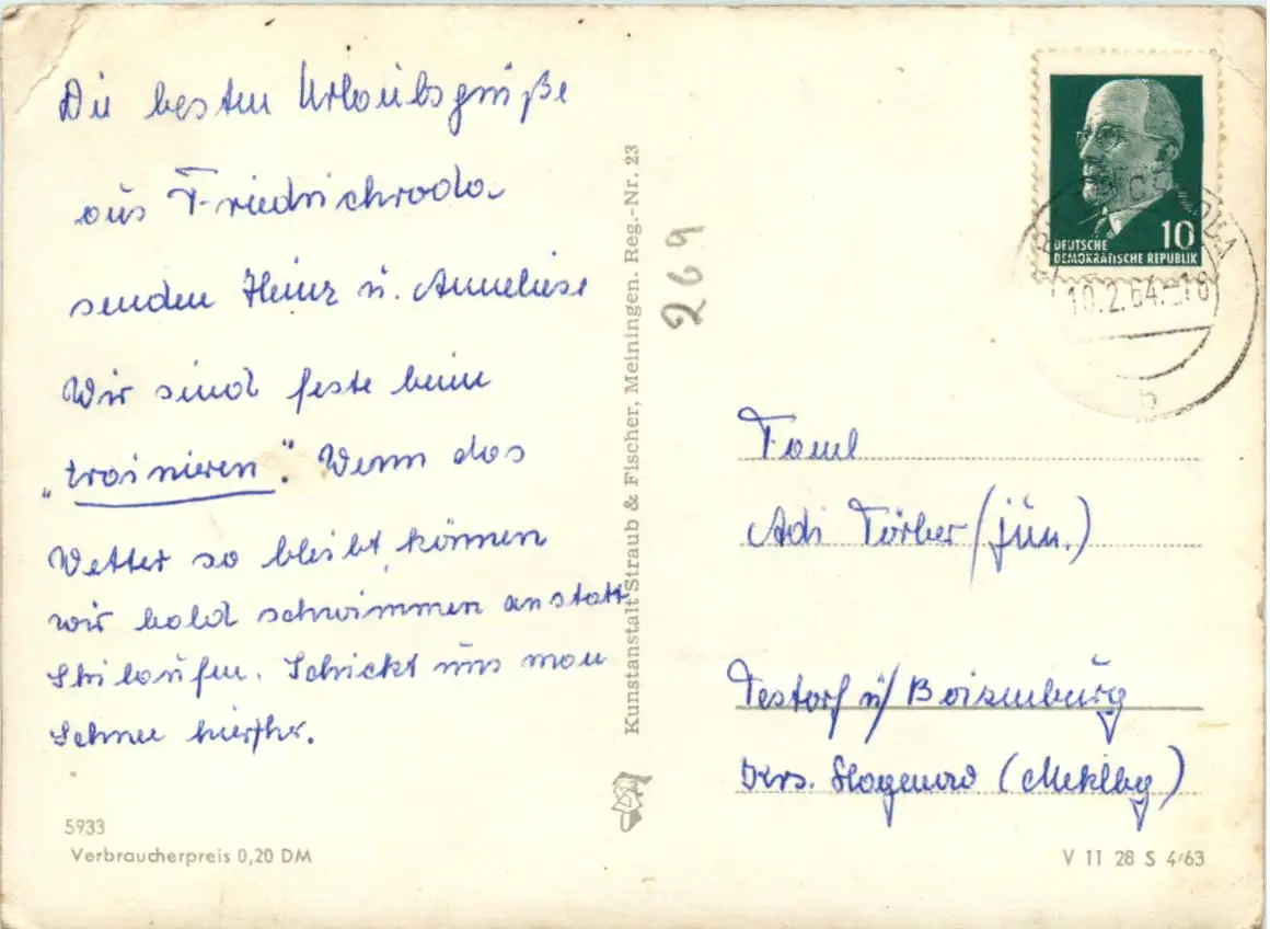 Der Zustand der Ansichtskarte war wie beschrieben und der Preis akzeptabel. Der Versand erfolgte leider erst nach knapp einer Woche nach Aufforderung und Androhung von Konsequenzen. Deshalb werde ich hier nicht mehr kaufen
