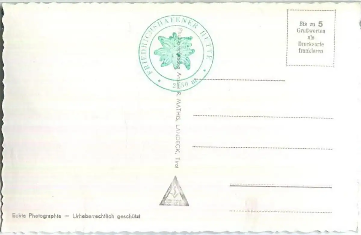 Friedrichshafner Hütte - Foto-Ansichtskarte - Verlag R. Mathis Landeck