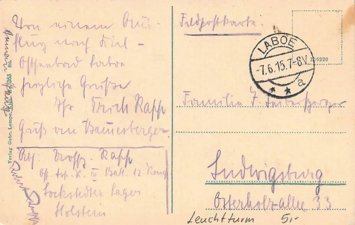 Friedrichsort Leuchtturm und Hafen feldpgl1915 161.021