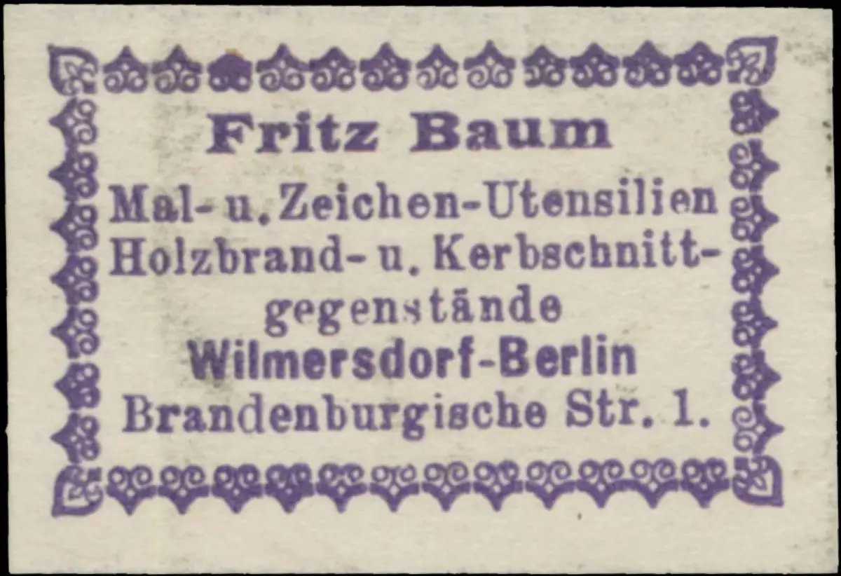 Mal- und Zeichen-Utensilien, Wilmersdorf, Brandenburgische Straße 1, Größe/Zustand: 3x4 , fleckig, Original alte Reklamemarke die seinerzeit für die Werbung benutzt wurde