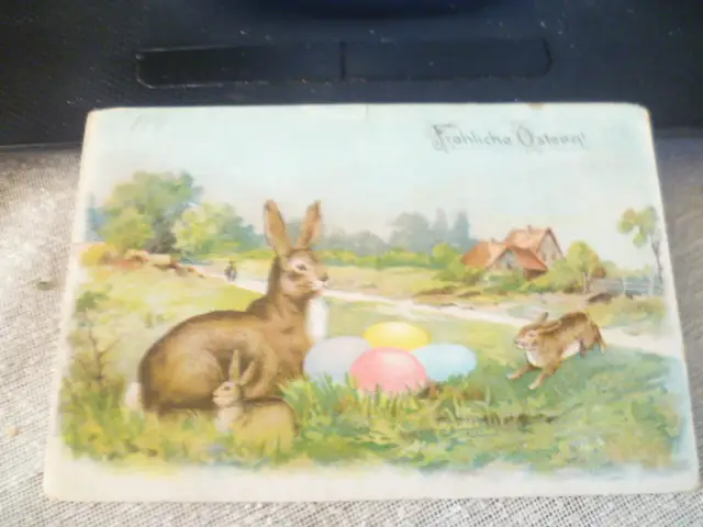 Fröhliche Ostern Ak Hasen mit Ostereiern nicht gelaufen