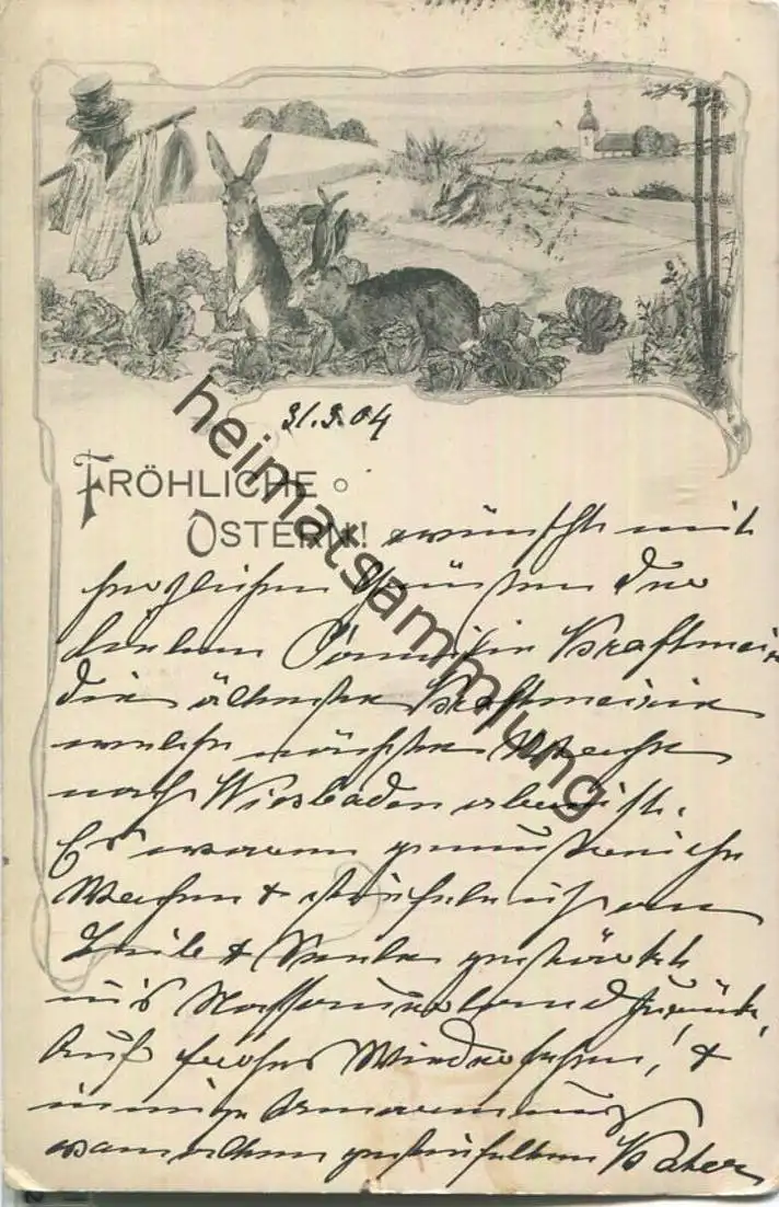 Fröhliche Ostern - Hasen - Jugendstil (G10093) gel. 1904