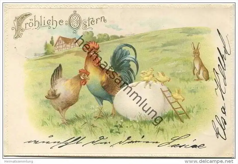 Fröhliche Ostern - Hühner - Hase - Küken (G30280) gel. 1903