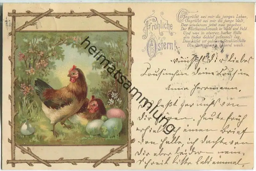 Fröhliche Ostern - Hühner - Ostereier - Stempelspur (G38082) gel. 1900