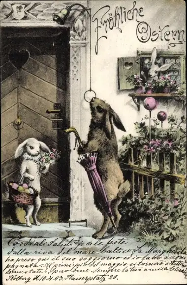 Ansichtskarte, Postkarte, Ostern, Osterhase, Frohe Ostern, Ostereier, Osterfest