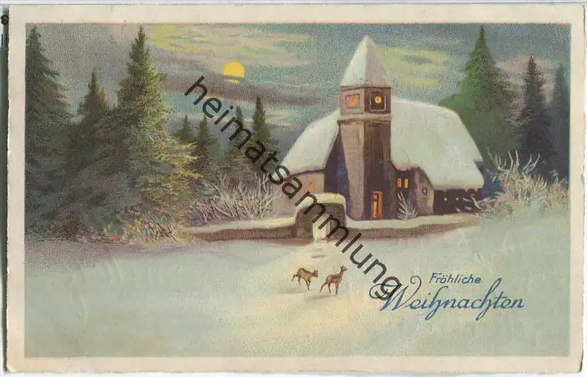 Fröhliche Weihnachten - Kirche - Rehe (G38050) gel. 1931