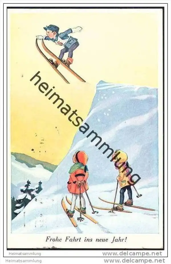 Frohe Fahrt ins neue Jahr! - Schispringer - leichte Gebrauchsspuren (G18794) gel. 1925