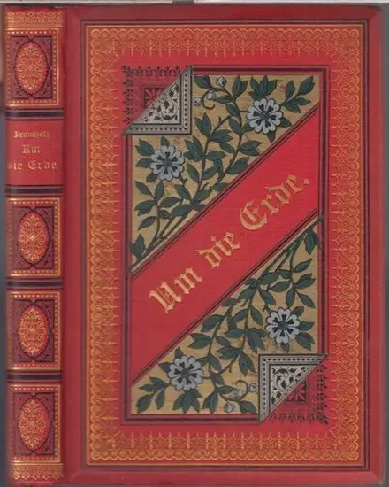 Freie Beschreibung: 23 x 16 cm. Rotes Original-Leinen mit gold-schwarzen Verzierungen sowie mehrfarbig geprägtem Vorderdeckelschmuck, an Ecken und Kanten nur minimal bestoßen. IV, 339 Seiten mit goldgemusterten Vorsätzen, marmorierten Schnitten, Lesebändchen, Buchschmuck sowie einer farbigen ausfaltbaren Weltkarte mit Reiseroute. Auf der Rückseite des Vorsatzblatts eine 4zeilige private Widmung in alter Tinte, datiert Weihnachten 1892 in Berlin. Sehr sauberes, gut erhaltenes und dekoratives Exemplar