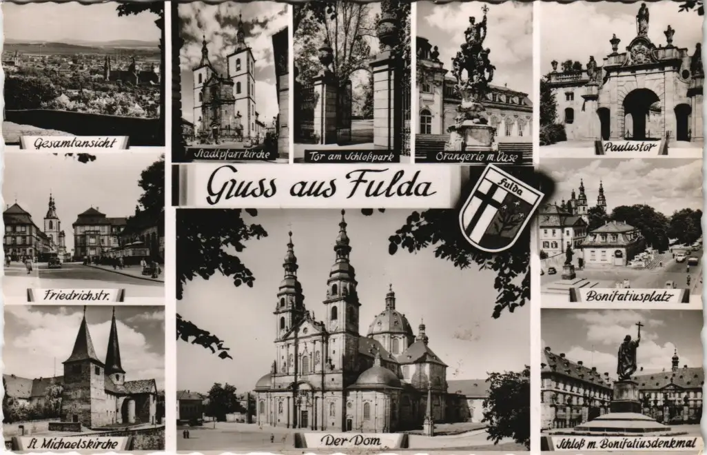 Fulda Mehrbild-AK ua. Stadtpfarrkirche, Paulustor, Dom uvm. 1957