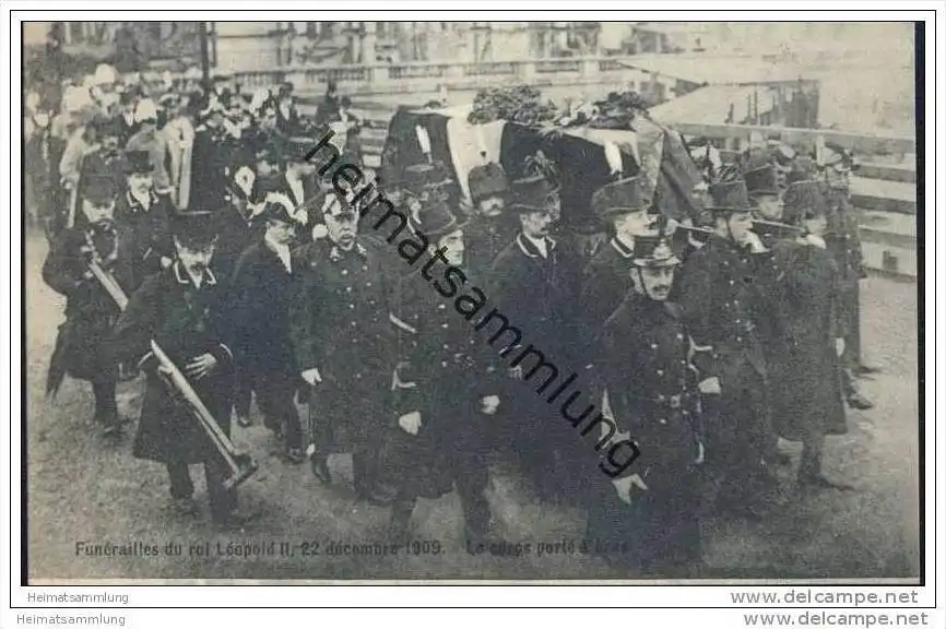 Funérailles du roi leopold II - 22 décembre 1909 - Le corps porté à bras